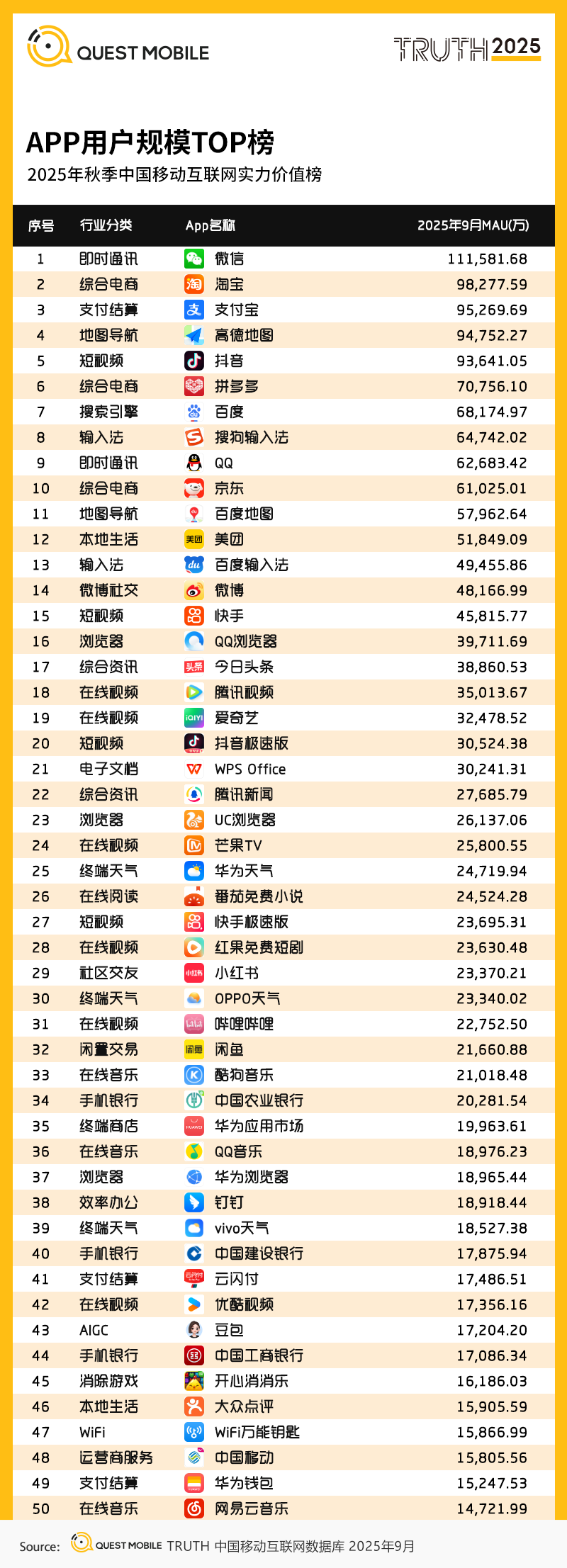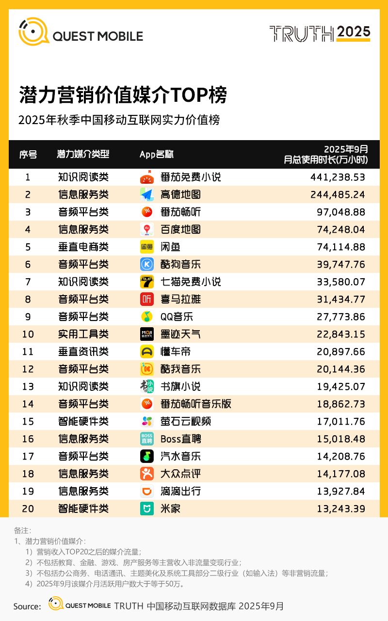 2025年秋季中国移动互联网价值榜单
