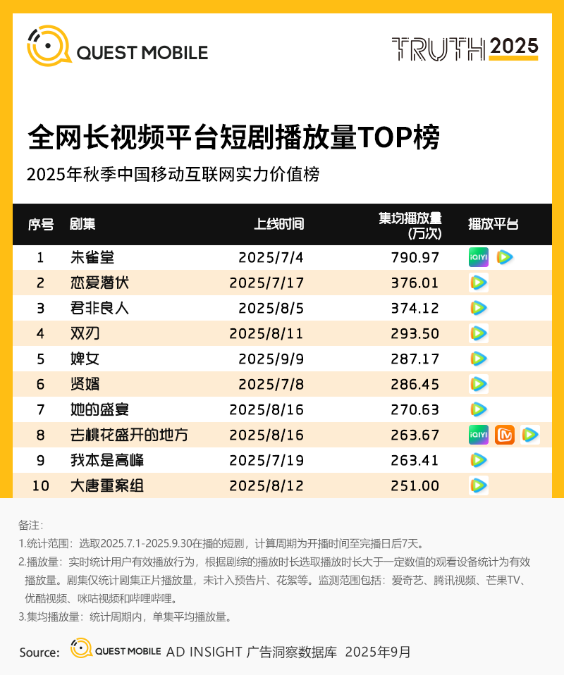 QuestMobile数据显示,2025年9月,抖音旗下番茄免费小说与红果免费短剧重合用户规模达8,726万,同比增长80.3%,显示出“阅读—观看”闭环正在形成;与此同时,七猫短剧APP自上线以来用户稳步增长。