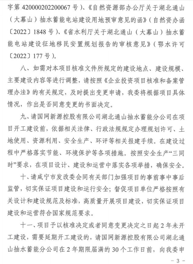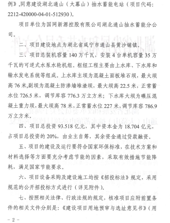 本网讯:(全媒体记者 杨周复)2022年12月30日,湖北通山(大幕山)抽水蓄能电站项目顺利获得湖北省发改委核准批复,标志着湖北通山(大幕山)抽水蓄能电站项目开启实质性建设新阶段。从2009年开始谋划,13年的风雨兼程,多届政府的不懈努力,49万人民翘首企盼,百亿项目终于九转功成。