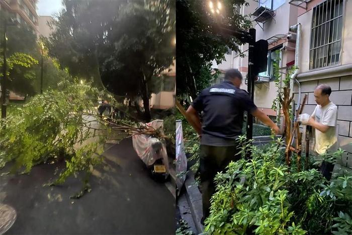 在台风的肆虐下,部分树木不幸倒伏,不仅影响了小区的交通,还对居民的安全构成威胁。社区工作人员发现后,迅速组织力量进行清理和加固。将倒伏的树枝锯断,及时将清理出的树枝和杂物运走,快速恢复小区道路的畅通。