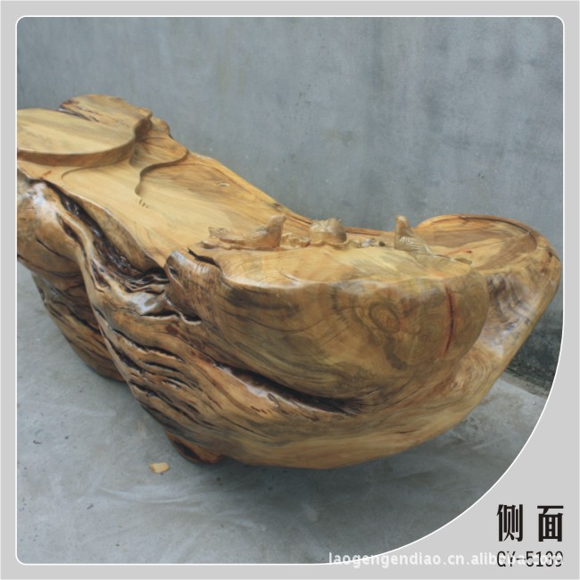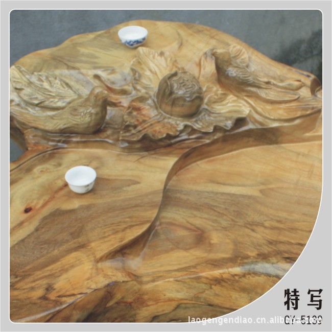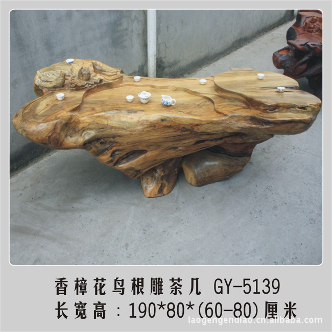 香樟木根雕花鸟茶几:由百年香樟木树根制作而成,茶几大气、造型优美自然,独具特色,雕刻师傅构思巧妙,茶几雕有花鸟,寓意花开富贵,茶几随树根形状而作,桌面纹路清晰,非常美观,让人叹为观止!可单独摆放作为装饰,亦可配几张香樟木或杉木瘤凳子与亲朋好友一边聊天一边喝茶。