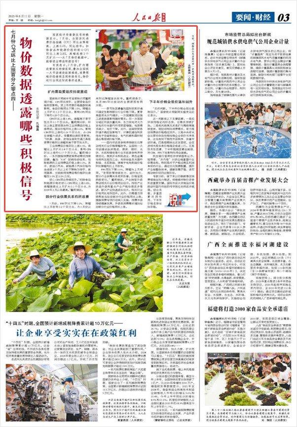 专家表示,7月份,扩内需政策效应持续显现,叠加全国统一大市场建设纵深推进,消费领域价格继续呈现积极变化,物价运行出现边际改善的迹象。